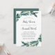 Elegant botanical baby shower invitations feature a chic colour palette of forest green, inky off-black and crisp white. Your baby shower details are draped with abundant green branches and leaves in a vibrant painted watercolor style.