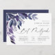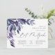 Lovely botanical invitations for bat mitzvahs feature watercolor leaves and foliage in shades of indigo blue and violet purple, cascading from the upper left corner. Customise with your Bat Mitzvah details aligned at the right and embellished with chic calligraphy. Additional template field provided on the back for more details.
