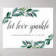 Designed to match our Abundant Foliage wedding collection, this elegant botanical sign invites wedding guests to celebrate the happy couple with a sparkler sendoff. Personalize with two lines of custom text in calligraphy script and traditional serif lettering (shown with "Let Love Sparkle: sparkler sendoff at [time]"), framed by lush watercolor greenery and eucalyptus leaves.