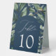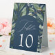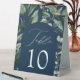 Elegant botanical wedding table tent signs featuring the table number nestled in an arched frame surrounded by eucalyptus, ferns, and other rich greenery. The navy background adds a refined and timeless touch, enhancing the natural beauty of the design. Personalise the number for each table card and add it to your cart to create a sophisticated, nature-inspired atmosphere for your wedding reception. Perfect for modern, botanical, or elegant wedding themes.