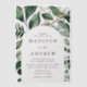 Announce your wedding in style with our Abundant Greenery Arch Frame invitations, featuring your wedding details nestled within a graceful arched frame, surrounded by lush eucalyptus, ferns, and rich greenery on a sheer vellum background. Perfect for any season, these botanical wedding invitations blend natural elegance with modern sophistication, creating an unforgettable introduction to your special day.