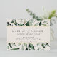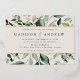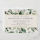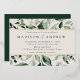Elegant botanical wedding invitations featuring watercolor greenery and gold foil bordering your wedding details with a cream-coloured background. The modern greenery wedding invitations reverse to display a solid dark green background. Designed to coordinate with our Abundant Greenery wedding collection.