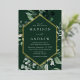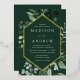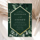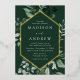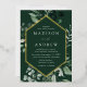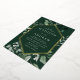 Elegant wedding invitations featuring your wedding details nestled inside of a gold foil frame surrounded by eucalyptus, ferns, and other rich greenery with a dark green background. The modern botanical wedding invitations reverse to a solid green background. Designed to coordinate with our Abundant Greenery wedding collection.