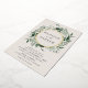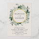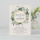 Elegant wedding invitations featuring your names encircled by gold foil with eucalyptus leaves, fern fronds, and other rich greenery on a cream-coloured background. Personalise the gold foil wedding invitations by adding your wedding details below. The modern botanical wedding invitations reverse to a solid dark green background. Designed to coordinate with our Abundant Greenery wedding collection.