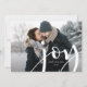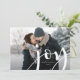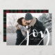 Simple and elegant holiday photo card lets your favourite photo take centre stage. Chic design features a full bleed horizontal or landscape orientated photo, with "joy" overlaid in white script lettering. Personalise with your names or family name, and the year. Cards reverse to a wintry red and green tartan plaid pattern.