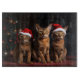 An enchanting scene captures the essence of cosiness and holiday spirit as furry companions adorned in Santa Claus hats gather around a crackling fireplace. The warmth emanating from the hearth creates a snug atmosphere for these adorable canines, while festive stockings hang in the background, enhancing the merry ambiance. The charming illustration portrays a timeless image of companionship and festive joy, perfect for celebrating the holiday season with a touch of canine charm