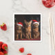 An enchanting scene captures the essence of cosiness and holiday spirit as furry companions adorned in Santa Claus hats gather around a crackling fireplace. The warmth emanating from the hearth creates a snug atmosphere for these adorable canines, while festive stockings hang in the background, enhancing the merry ambiance. The charming illustration portrays a timeless image of companionship and festive joy, perfect for celebrating the holiday season with a touch of canine charm
