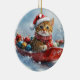 Abyssinian Cat in Sledge Let it Snow Christmas Ceramic Ornament