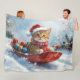 Abyssinian Cat in Sledge Let it Snow Christmas Fleece Blanket