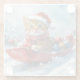 Abyssinian Cat in Sledge Let it Snow Christmas Glass Coaster