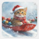 Abyssinian Cat in Sledge Let it Snow Christmas Square Sticker