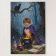 Step into a magical Halloween night with this whimsical oil painting featuring an adorable kitten dressed in a mini witch cloak, seated beside a bubbling cauldron in a shadowy forest. Surrounded by glowing potions, old spellbooks, and twinkling magical sparks, the scene is filled with mystery and charm. Rich painterly textures and deep Halloween hues create a cosy, enchanted vibe perfect for spooky season lovers.