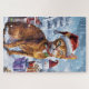 This festive design captures the joyful spirit of the holiday season, featuring an adorable pup wearing a Santa hat. The cat is nestled in a winter wonderland, complete with a snowman, a decorated Christmas tree, and beautifully wrapped presents. Snowflakes gently fall, adding a magical touch to the scene, while the vibrant colours of the holiday decorations create a warm and cheerful atmosphere.