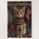 Add some holiday cheer with this charming design featuring a kawaii-style cat in a cosy sweater. Sitting joyfully by a fireplace adorned with stockings, the scene is complete with colourful presents and garlands, bringing warmth and festive vibes. The soft, playful colours capture the cosiness of the holiday season, making it a delightful way to celebrate the holidays with a joyful pup at the heart of the scene.