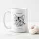 Bring a moment of calm reflection to your morning with this Abyssinian cat mug, featuring a black and white portrait of the contemplative, smooth-coated breed. Known for being Curious, Graceful, and Unshaken.