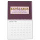 September: "Dompter la matière, c'est le premier pas; réaliser l'idéal, c'est le second." (5.I.v) October: "Faire le poème de la conscience humaine, ne fût-ce qu'à propos d'un seul homme, ne fût-ce qu'à propos du plus infime des hommes, ce serait fondre toutes les épopées dans une épopée supérieure et définitive." (1.VII.iii) November: "L'homme a un tyran, l'ignorance." (1.I.x) December: "Il n'y a guère autre chose que cela dans le monde: s'aimer." (5.IX.v) January: "Lumière! lumière! tout vient de la lumière et tout y retourne." (5.I.v) February: "Rien n'est plus dangereux que le travail discontinué; c'est une habitude qui s'en va." (4.II.i) March: "Liberté: la souveraineté de moi sur moi; Egalité: la concession que chacun fait à tous; Fraternité: la protection de tous sur chacun." (Adapted from 5.I.v) April: "L'égalité ce n'est pas une société de grands brins d'herbe et de petits chênes." (Adapted from 5.I.v) May: "Espérance: le mot que le doigt de Dieu écrit pourtant sur le front de tout homme." (Adapted from 1.II.vii) June: "Il y a des gens qui observent les règles de l'honneur comme on observe les étoiles, de très loin." (5.I.xxi) July: "L'infaillibilité n'est pas infaillible." (5.IV.i) August: "Frères, qui meurt ici meurt dans le rayonnement de l'avenir, et nous entrons une tombe toute pénétrée d'aurore." (5.I.v)