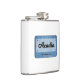 The flask itself is fine. It’s a cheap flask, obviously bought in bulk, however am prepared to overlook that. Given that it is a personalized item, I would have liked to have seen gift boxing instead of the generic packaging. Terrible printing, and/or quality. It’s a cheap, tacky vinyl. It is not cut straight and is also applied in a way that it is overhanging the bottom, causing the glue to catch on items and it will eventually roll and tear, damaging the wrap.