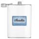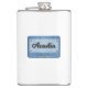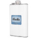 The flask itself is fine. It’s a cheap flask, obviously bought in bulk, however am prepared to overlook that. Given that it is a personalized item, I would have liked to have seen gift boxing instead of the generic packaging. Terrible printing, and/or quality. It’s a cheap, tacky vinyl. It is not cut straight and is also applied in a way that it is overhanging the bottom, causing the glue to catch on items and it will eventually roll and tear, damaging the wrap.