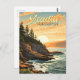 Acadia vector artwork design. Acadia National Park is primarily on Maine's Mount Desert Island. Its landscape is marked by woodland, rocky beaches and glacier-scoured granite peaks such as Cadillac Mountain.