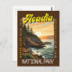 Acadia vector artwork design. Acadia National Park is primarily on Maine's Mount Desert Island. Its landscape is marked by woodland, rocky beaches and glacier-scoured granite peaks such as Cadillac Mountain.