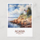 This watercolor design beautifully showcases Park Bass Harbour Lighthouse in Acadia National Park. Water laps against the rocky shoreline of this forest-filled island park that is one of the most visited national parks in the United States.