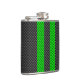 Accent Green Carbon Fibre Style Racing Stripes Hip Flask