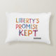 The t-shirt design features the phrase "Liberty's Promise Kept" in bold, multicolored letters. The colours are vibrant and patriotic, creating a striking visual impact. The arrangement of the letters is dynamic and eye-catching, adding to the overall appeal of the design. The overall feel of the design is energetic, positive, and celebratory, conveying a sense of pride and accomplishment.