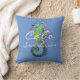 This accent throw pillow is shown in a pretty seahorse art print with text "Cabo San Lucas" across the front.