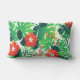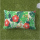This outdoor accent throw pillow is shown with a lovely summer time tropical floral print design.