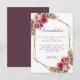 Chic elegant and formal Wedding Information enclosure card features romantic wedding watercolor displayed in leafy greenery on a crisp white background. A sparkling golden colour geometric crystal-shaped frame provides a trendy touch. Traditional, classic wording provides timeless sophistication. Personalise wedding details for your guests in elegant cassis purple lettering and script. The back of the card is a solid matching purple cassis.