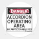 Danger, Accordion Operating Area! Ear Protection Required! This is fair warning to anyone around musical instruments. See all our musical designs on on cups, mugs, tee shirts, sweatshirts, hats, and other gifts and clothing.