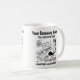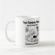 Illustration shows a Female Chartered Accountant working at her desk. Accountancy Services cartoon on a mug. Add your company name and number.