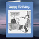 Funny large Birthday card that will be appreciated by anyone who works in accountancy or finance perhaps. The image shows an accountant who is surprised to see a client enter his office carrying a giant piggy-bank.