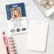 Create a professional appearance with this Notary Public ID badge. A stylish design featuring a feather quill pen within a seal-shaped symbol. This template is personalised with your profile photo, name, service information, contact details, and a QR code. Add a company logo or accreditations — the notary symbol can also be replaced. A classic blend of traditional and contemporary styles, creating an elegant and friendly aesthetic. Fully customisable text to fit your business brand. Perfect for a Notary Public, Loan Signing Agent, Certified Notary Trust Delivery Agent (CNTDA), Mobile Notary, Apostille or other legal professional. Printed colours: Navy dark blue, white, and gold colour elements. Shop the online collection for more popular product ideas and supplies, designed for notaries!