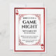 This Game Night party invitation features a classic playing card design. An ornate, vintage style frame surrounds the centre text area. A matching red foil design frame borders the invitation. Two red hearts and the Ace monogram are printed in opposite corners, similar to the layout in a deck of cards.