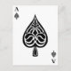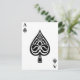 Made to look like an ace of spades playing card or a trump card, this design features an ornate spade illustration in black and white.