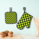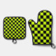 Acid green black checkerboard pattern oven mitt & pot holder set