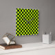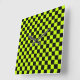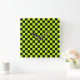 Acid green black checkerboard pattern square wall clock