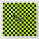 A vibrant checkerboard pattern with alternating neon yellow and black squares creates a striking geometric design, conveying a bold and energetic tone.