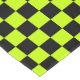 A vibrant checkerboard pattern with alternating neon yellow and black squares creates a striking geometric design, conveying a bold and energetic tone.