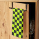 A vibrant checkerboard pattern with alternating neon yellow and black squares creates a striking geometric design, conveying a bold and energetic tone.