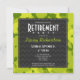 Chic Retirement Party invitation with cool Acid Green Camo; Camouflage pattern and dark grey modern chevron background.