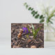 Acorn elf checking the spring flower - funny postcrossing postcard