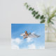 Acorn elf flies on a paper swallow postcard - funny postcrossing postcard
