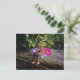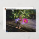 Acorn elf girl on birch with flowers - funny spring or summer postcrossing postcard