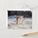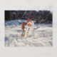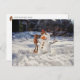 Acorn elf making a snowman - funny winter postcrossing postcard