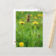 Acorn elf practicing on dandelions on the meadow - funny summer postcrossing postcard