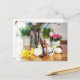 Acorn elf painting Easter eggs with smile - funny Easter postcard with decorated eggs