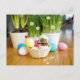 Acorn elf with Easter eggs - funny Easter postcard with decorated eggs