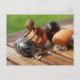 Acorn elf with Easter eggs - funny Easter postcard with decorated eggs
